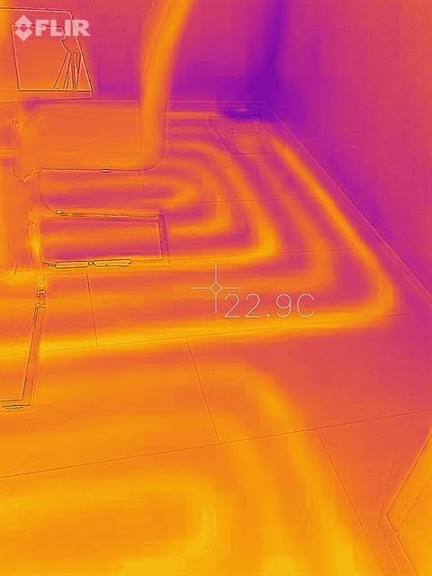 - We use our thermal camera to identify problem areas in the floor and to check what zones are on and working.